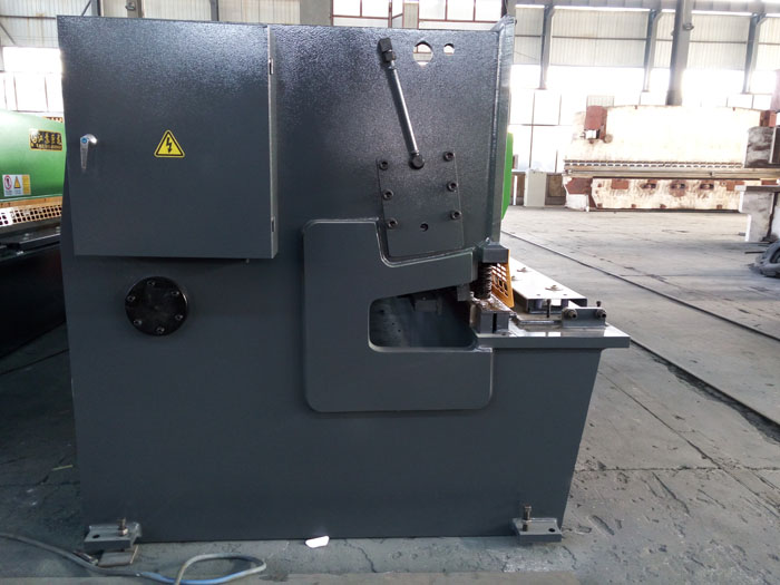 全鋼焊接結(jié)構(gòu),綜合處理(振動(dòng)時(shí)效、熱處理)消除內(nèi)應(yīng)力,有很好的剛性與穩(wěn)定性; 采用先進(jìn)的集成式液壓系統(tǒng),可靠性好; 消除導(dǎo)軌間隙,提高剪切質(zhì)量;機(jī)動(dòng)后檔料,手動(dòng)微調(diào),數(shù)字顯示; 刀片間隙有手輪調(diào)整,迅速、準(zhǔn)確、方便。 矩形刀片,四個(gè)刃口均可使用,使用壽命長(zhǎng)。剪切角可調(diào),減少板料扭曲變形; 上刀架采用內(nèi)傾結(jié)構(gòu),便于落料,并能提高工作的精度; 具有分段剪切功能;具有燈光照明裝置功能; 后托料裝置(可另選擇配置);